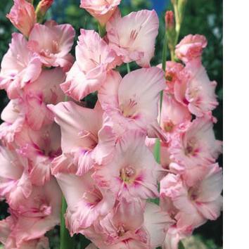 Gladiol Nymph adalah tambahan yang mencolok untuk taman dengan bunga putih krem yang tahan lama memperlihatkan bercak-bercak merah muda berbentuk tetesan air mata merah di tepi kelopak bunga. Kami jual aneka umbi bibit tanaman hias bunga galdiol ada gladiol putih merah kuning ungu pink gladiol mix dll harga murah.