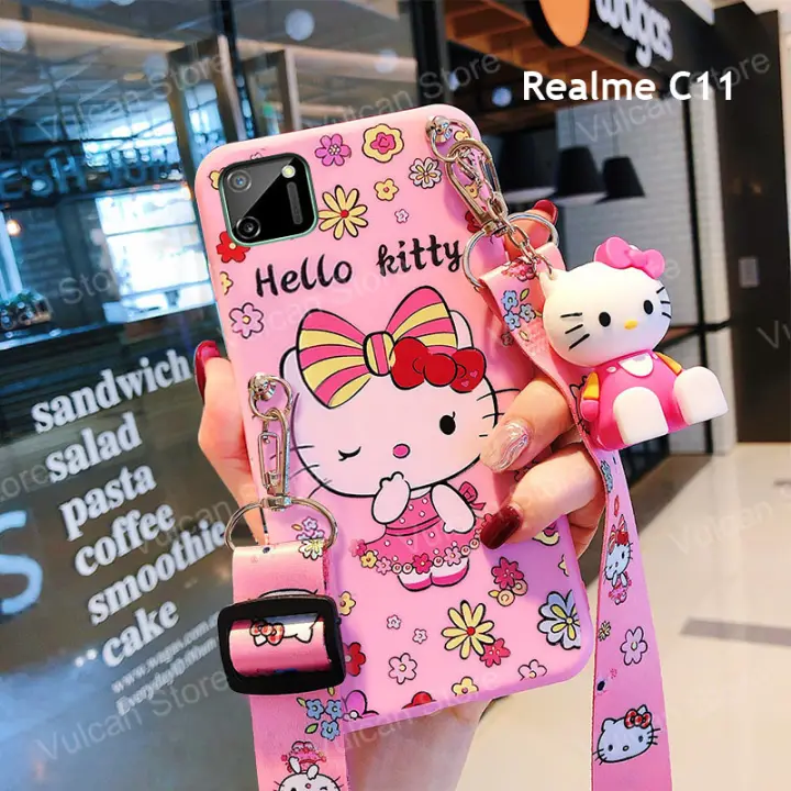 Casing Anti Jatuh Silikon Sarung Hp Anti Jatuh Silikon Cair Hello Kitty Merah Muda Lucu Untuk Realme C11 Dengan Tali Gratis Dan Liontin Boneka Lazada Indonesia